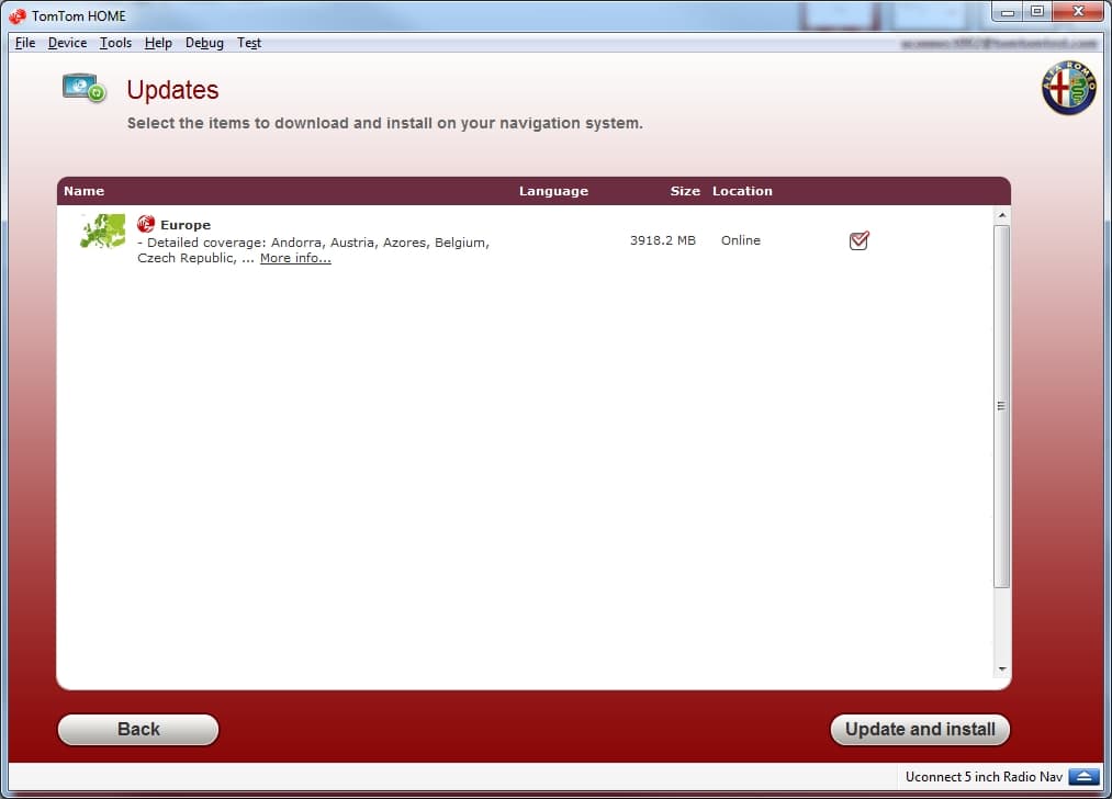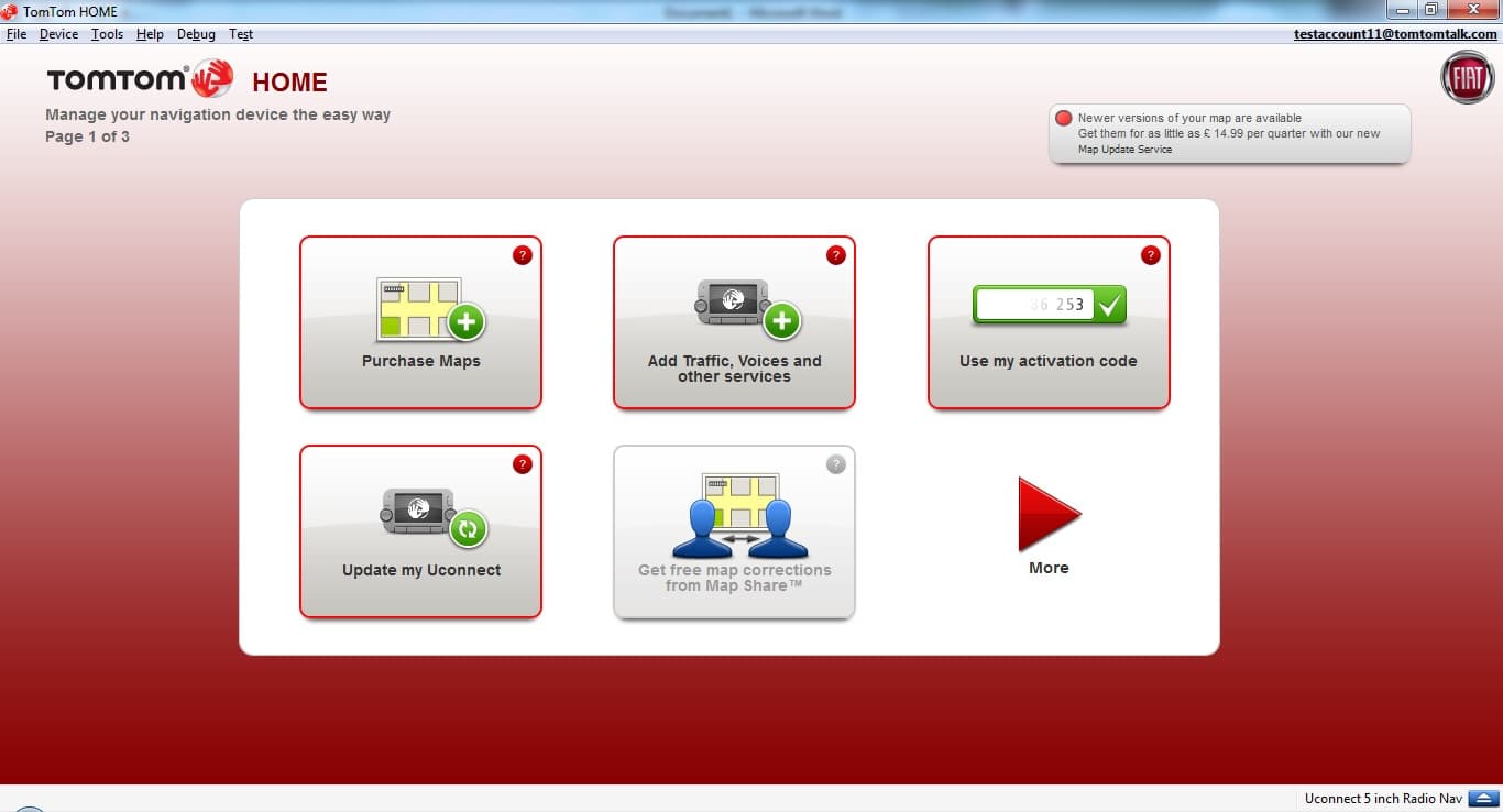 In the case of your navigation software displaying a lower version number than 11.815, contact the Fiat Chrysler Automotive service point to see if a software update for your radio is necessary. The radio software update will be offered according to the warranty standards. - Before installing a map, you need to prepare a USB device .