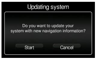 - Before the system starts to update the map, you are warned that the update may take some time. Select OK .