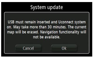 - Insert the USB device with the new map into your Uconnect system. The system detects that there is a new map on the USB device.