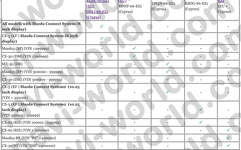 Since Mazda released the second generation of its multimedia system, Mazda Connect 2, choosing the correct navigation SD card for your vehicle has become increasingly difficult. The part number for the navigation card may vary depending on the model, year of manufacture, and even the VIN cutoff. While all the devices may look the same, the part numbers can differ, and the cards are not interchangeable. Even official Mazda dealers sometimes struggle with this. In this table, we have simplified the process of selecting the correct navigation card for your Mazda as much as possible.